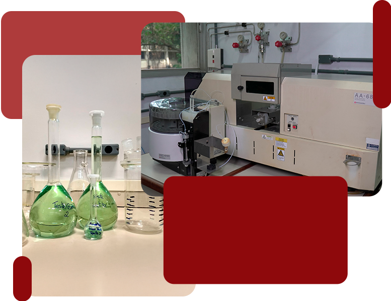 Dentre os equipamentos principais, dispõe de analisador UV-vis, espectrômetro de Fluorescência de Raios X, absorção atômica e analisador de carbono TOC.